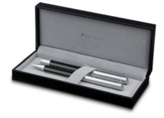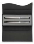 Письменные принадлежности в алюминиевом корпусе, чёрная мягкая зона грифа, высококачественное покрытие поверхности металлизированным лаком. Хромированные металлические детали.
